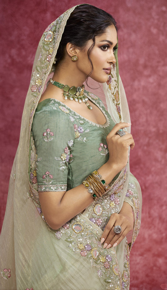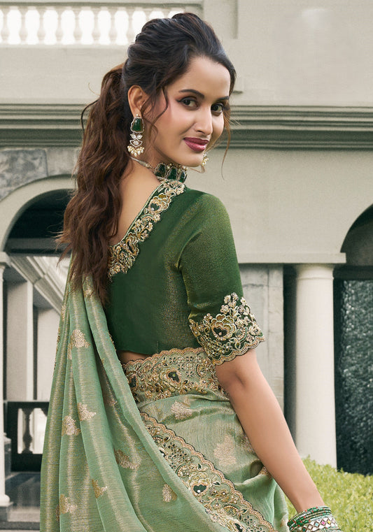 SAVE 10%Pure Viscose Sea Green Silk Saree