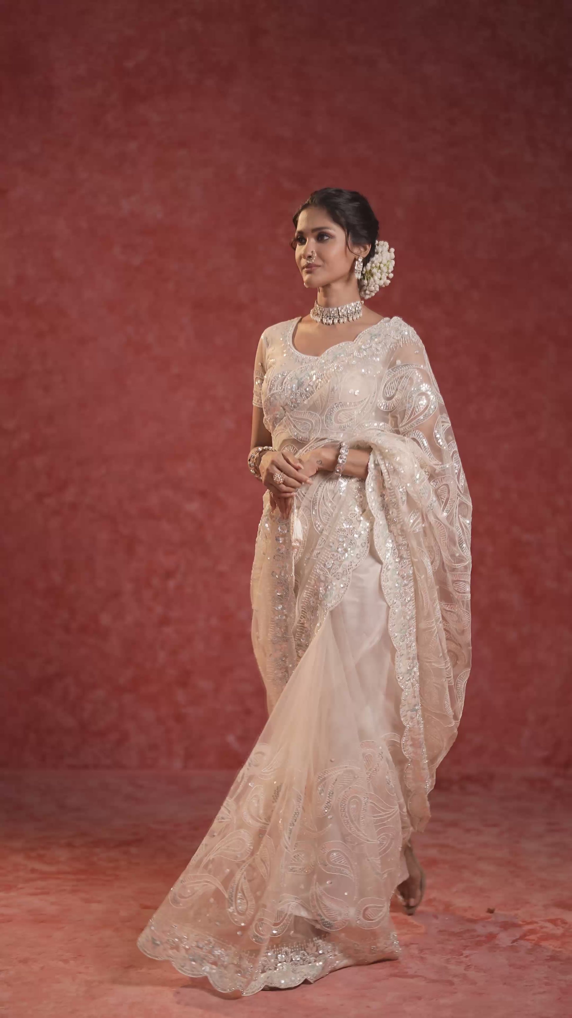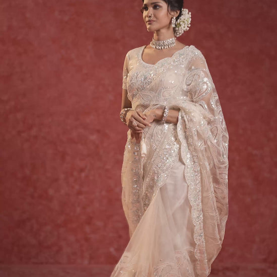 Elevate your ethnic wardrobe with this exquisitely crafted embroidered blouse. Designed with intricate Resham and Zari embroidery, it is further embellished with sparkling sequins, delicate beads, and shimmering stones, creating a perfect balance of tradition and glamour. Playful tassels add a graceful touch, making it a statement piece for festive occasions, weddings, and special celebrations.