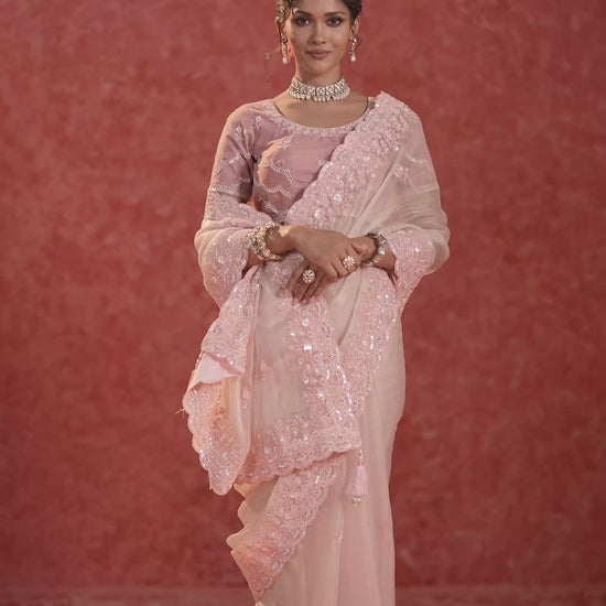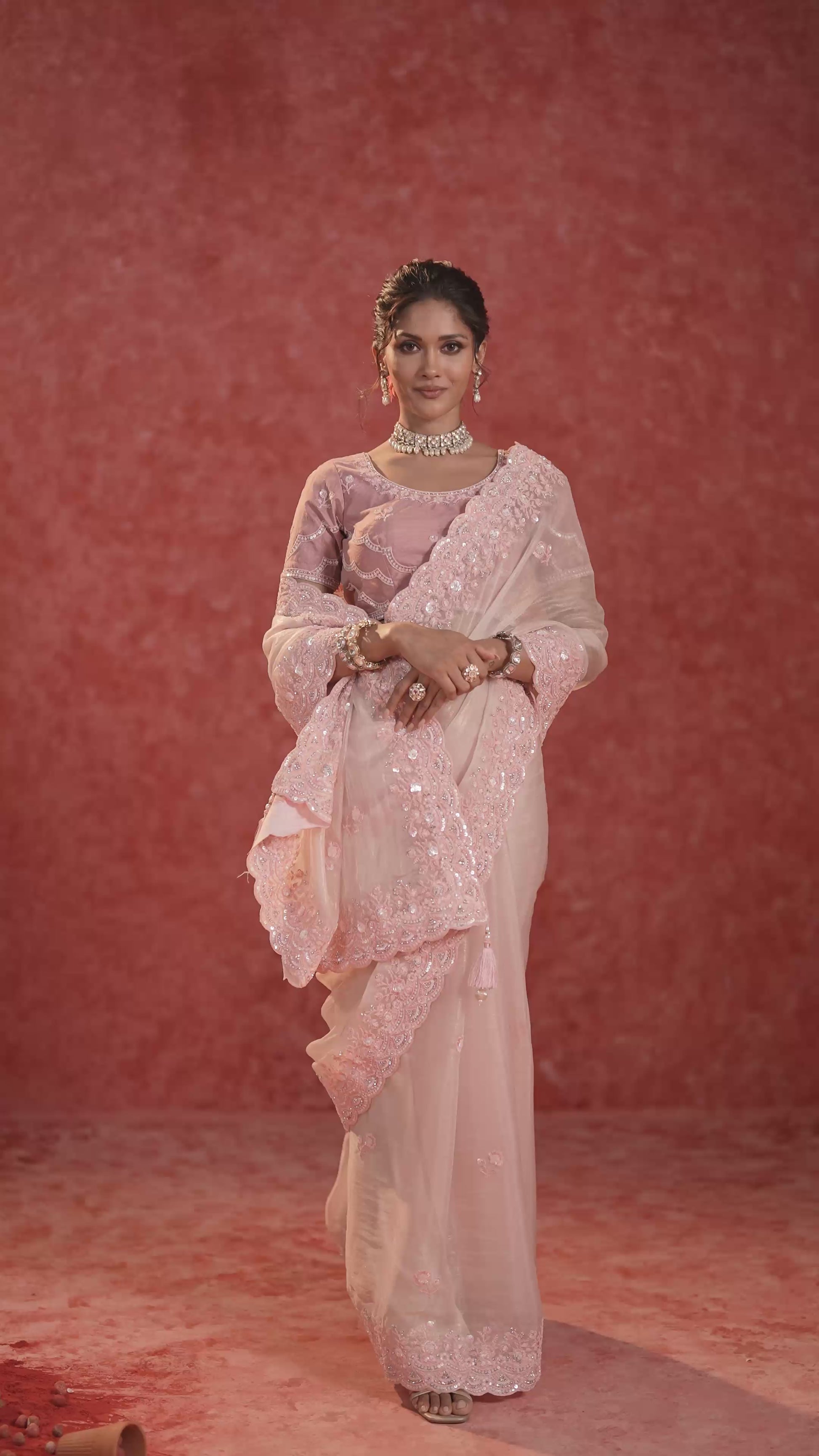 This saree is the perfect blend of subtle grace and festive sparkle, making it ideal for weddings, receptions, parties, and traditional celebrations.