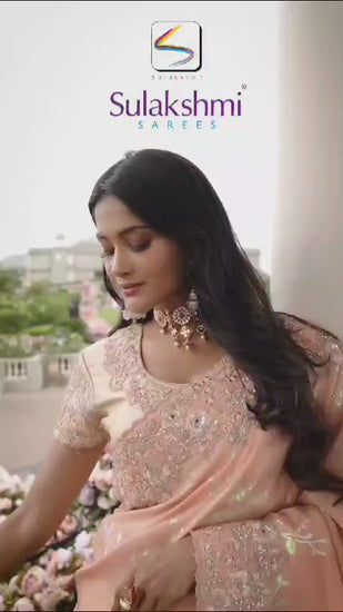 Drape yourself in timeless elegance with this peach viscose tissue jacquard saree, paired with a Beige Banarasi Silk blouse. The saree features a rich tissue jacquard pallu and a graceful viscose organza skirt, blending luxurious textures for a sophisticated look.