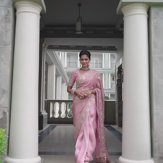 Half-Half Pink Pure Viscose Tissue Saree with Anmol Jari