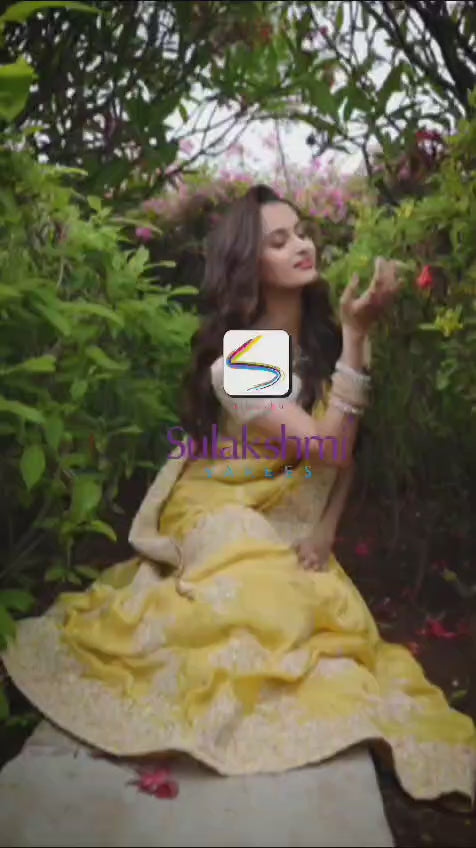 Elegantly crafted in pure viscose tissue silk, this saree exudes timeless charm with its luxurious texture and graceful drape. The jacquard weave pallu enhances its sophistication, while intricate resham and zari embroidery is beautifully complemented with sequins, stones, and tassel accents for a touch of glamour.
