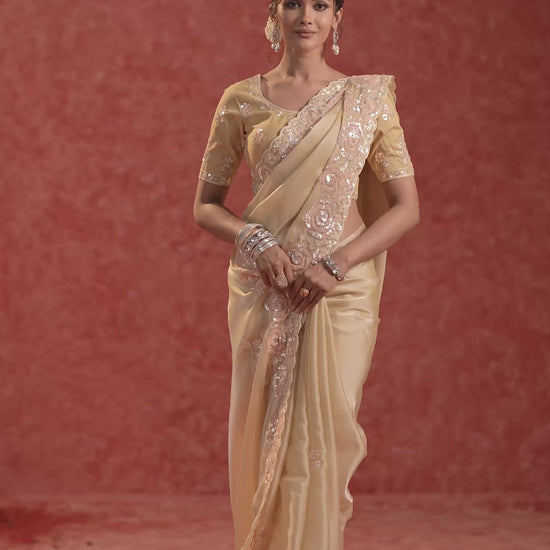 Mango Yellow Galaxy Satin Silk Saree with Embroidered Blouse